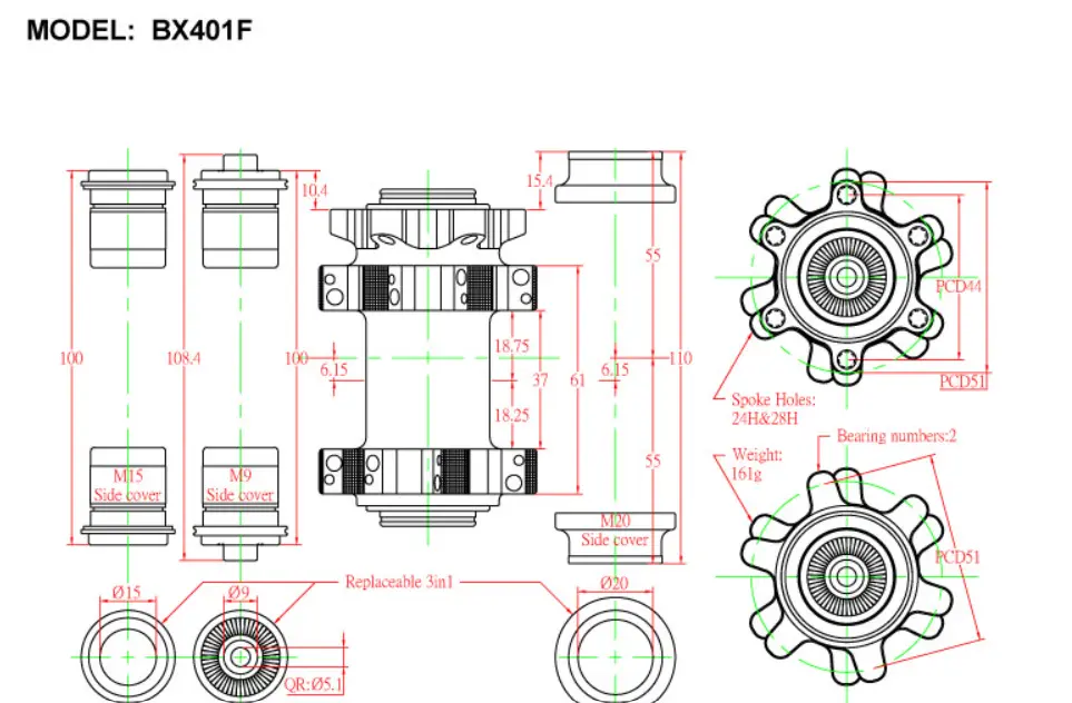 MAZA DELANTERA MTB BITEX BX401F SP 28H 15X100MM NEGRO MATE (LOGO CURVE)