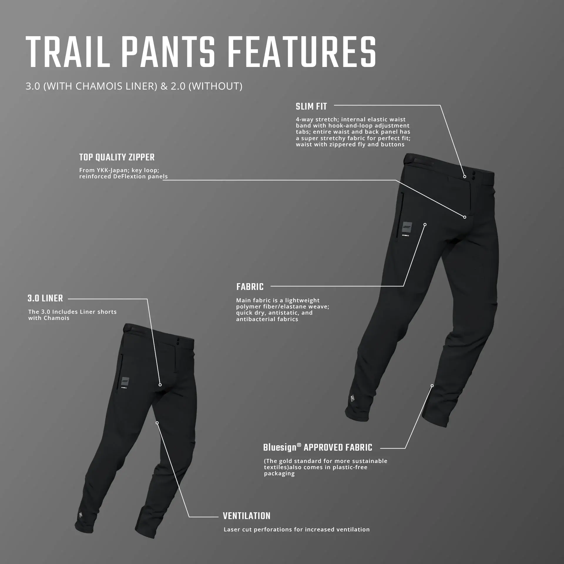 Pantalones de trail modernos de corte ajustado con forro extraíble y comodidad ligera.